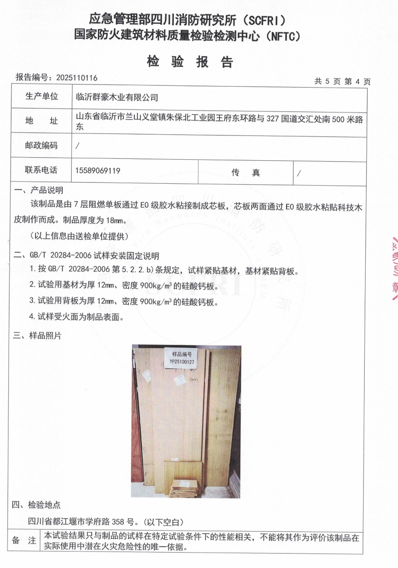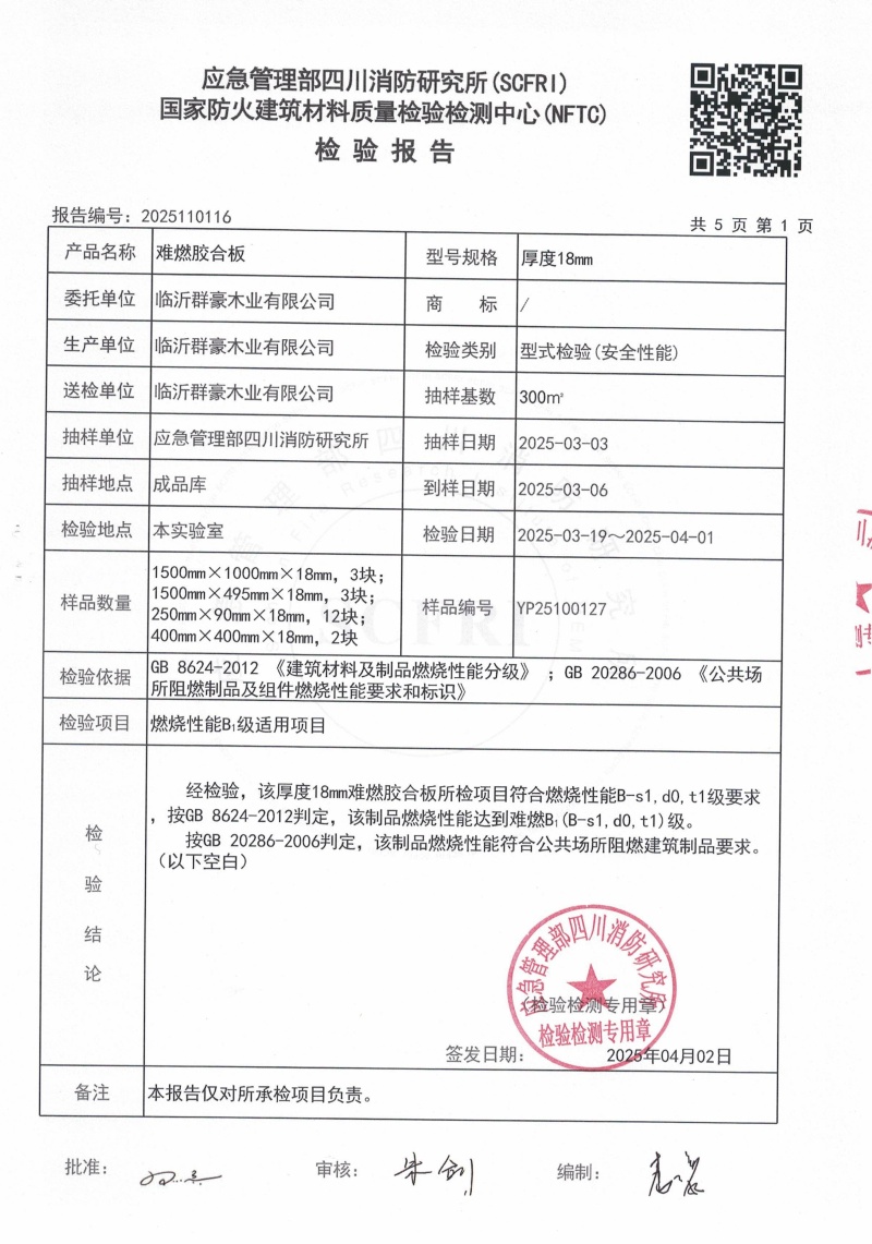 2025難燃膠合板18厘檢測報告